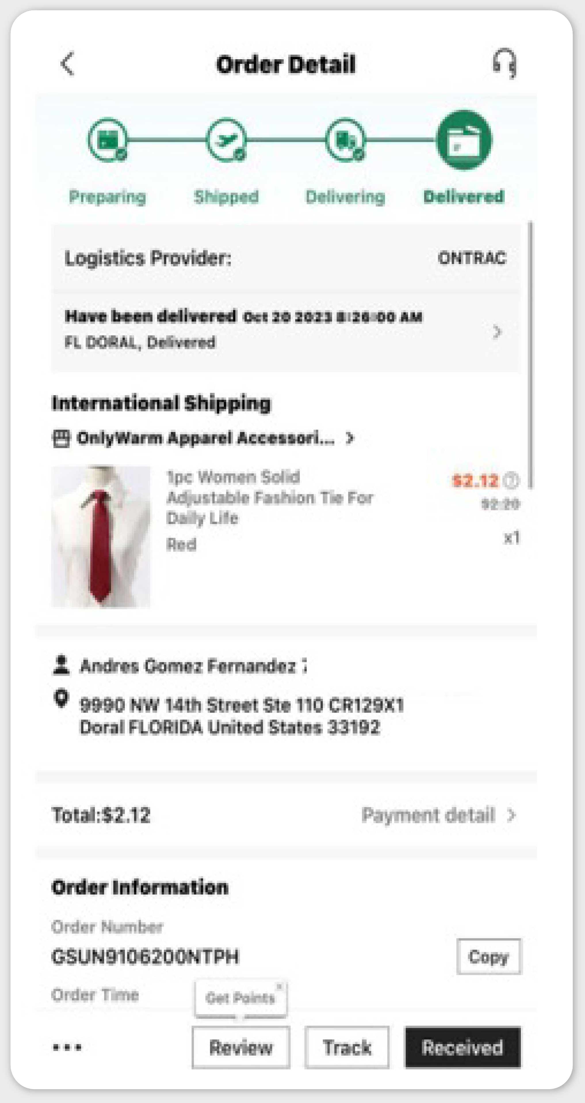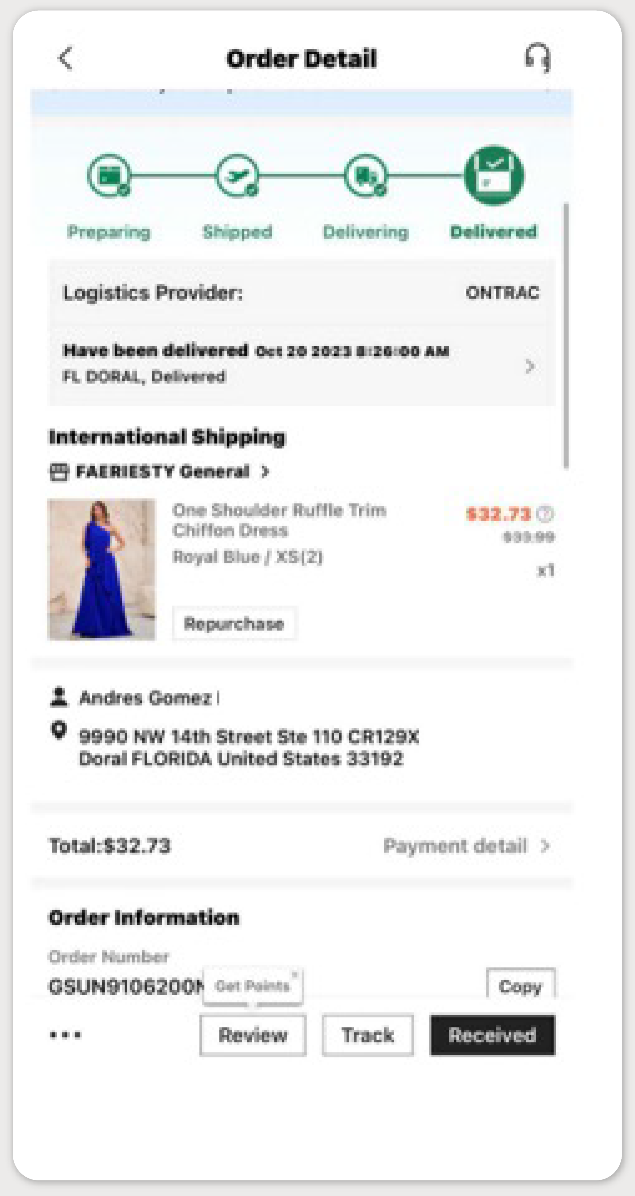 3. Colocá la información de tu compra como tracking number, nombre de la tienda, nombre del producto y valor.